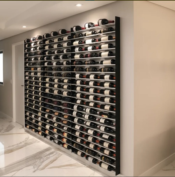 O suporte de garrafas de Vinho da Adegas Elegante é ideal para os amantes de vinho que desejam organizar e decorar seu espaço. Com um design industrial é perfeito para armazenar suas garrafas de forma prática e elegante. Feito de aço/alumínio muito resistente. Sua montagem na parede economiza espaço e dá um toque especial ao ambiente. É uma opção funcional e sofisticada para sua casa.