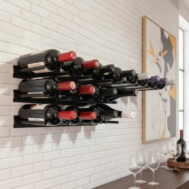 A adega frontal de parede coleção BLACK é uma peça compacta que, ao mesmo tempo, chama a atenção pelo seu design diferenciado. Além de ser uma linda peça, ela também é muito prática e versátil, pois permite acomodar com segurança 5 garrafas de vinho. Não há limites para o uso da prateleira, deixe a sua imaginação fluir. Você pode instalar quantas adegas quiser, juntas, elas podem preencher um grande espaço.