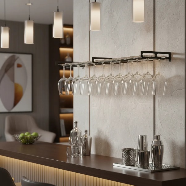 Porta Taça De Parede Para 24 Taças - Estendido - Preto