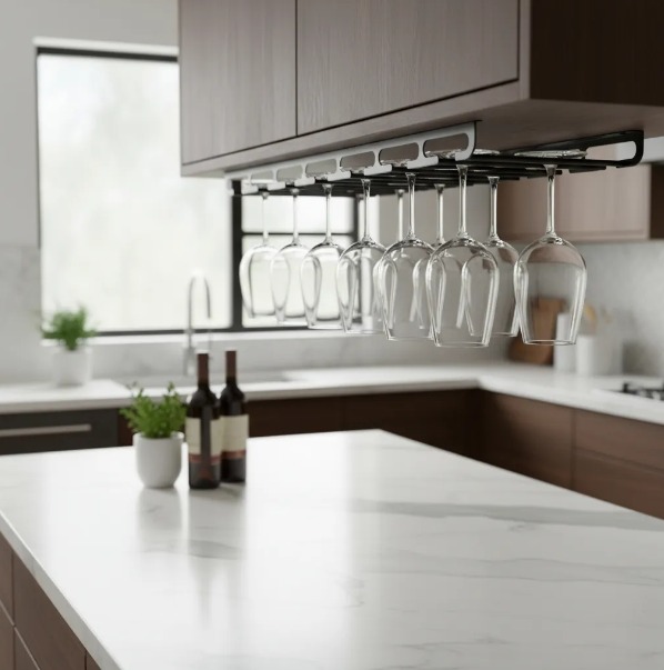 Este suporte é perfeito para deixar a sua casa ainda mais bonita, prática e organizada. Ele é prático e fácil de instalar. Você pode colocar dentro de armários, embaixo de prateleiras. É fabricado com chapa de aço galvanizada, tubo de alumínio e é pintado com tinta eletrostática a pó na cor preta.